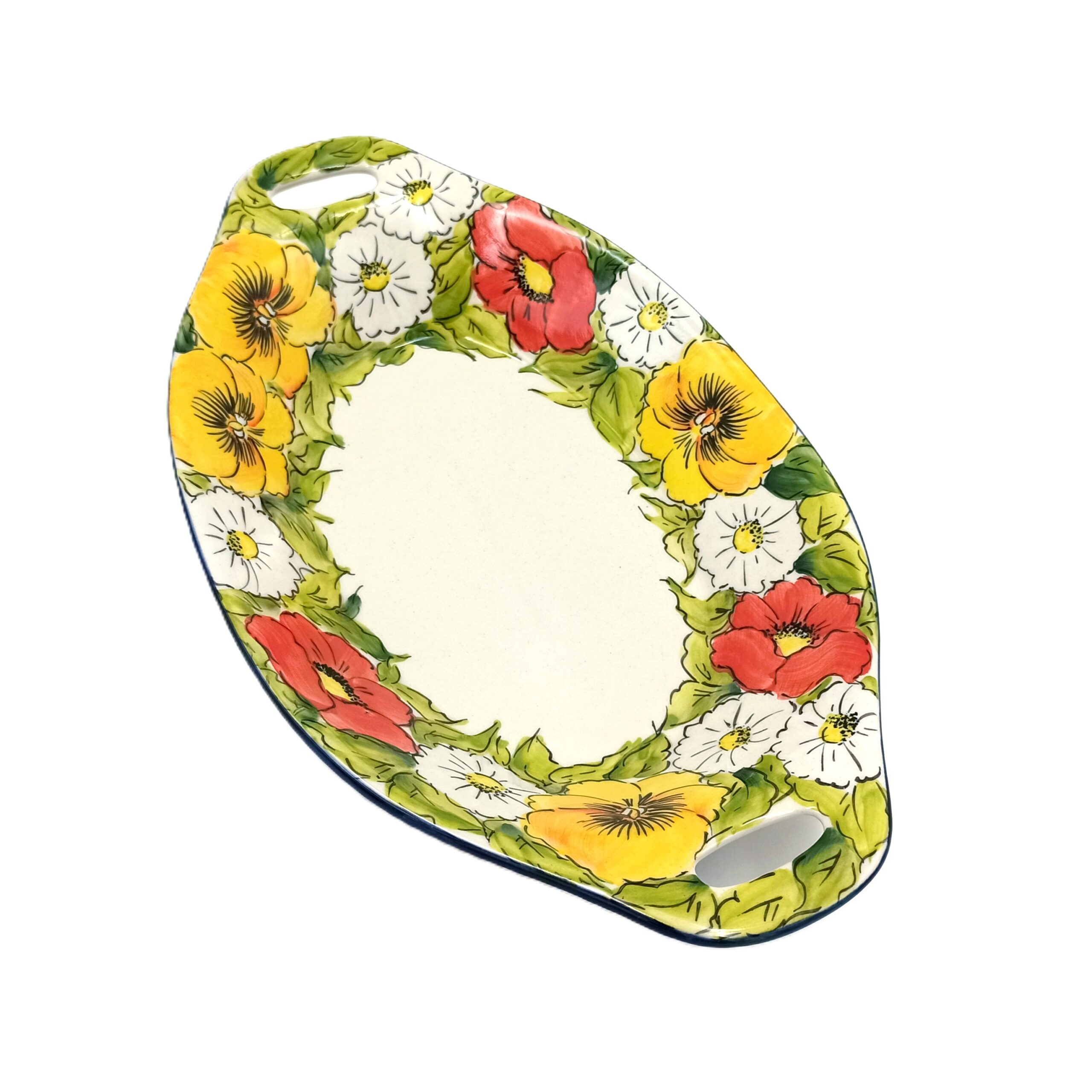 Wyrób ręcznie malowany. Poszczególne egzemplarze mogą się nieco różnić od przedstawionego na zdjęciu układem elementów lub nasyceniem kolorów.